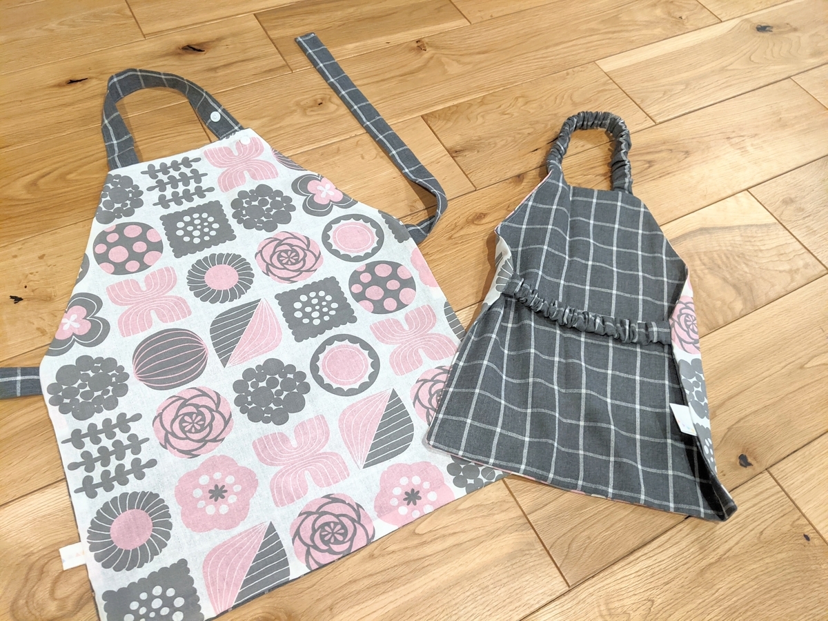 キッズ エプロン ハンドメイド 子供用エプロンの作り方 90~100サイズ かぶるだけで簡単着脱。