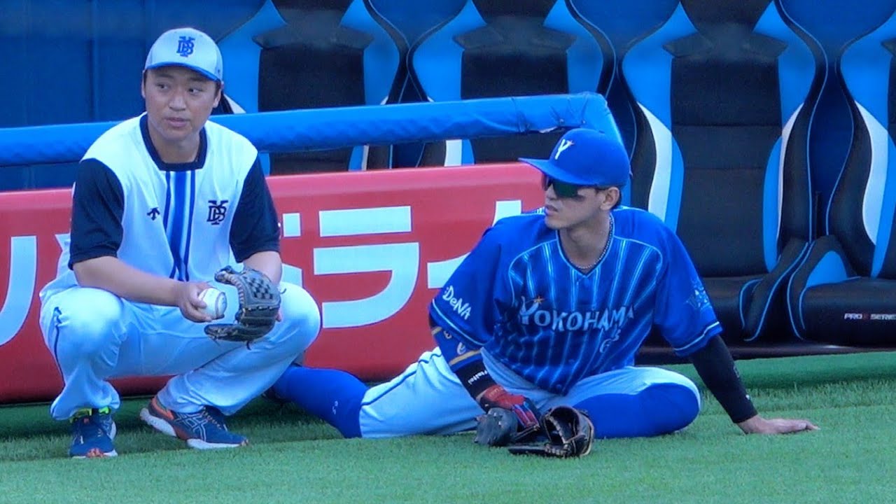 誰よりも早くグラウンドに来てストレッチとキャッチボールで準備する関根大気!プーさんは特製ドリンクの味見!2023 05 06 横浜DeNAベイスターズ宮﨑敏郎。