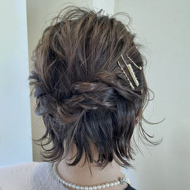 ショートボブ×結婚式お呼ばれアレンジ17選。バレッタ、編み込みにセルフアレンジMERY。