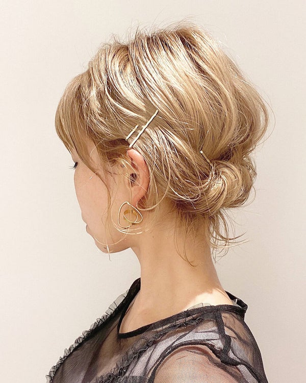 結婚式での簡単ショートヘアアレンジ!ピン1本でセルフアレンジ結婚式・パーティーヘアアレンジAll About。