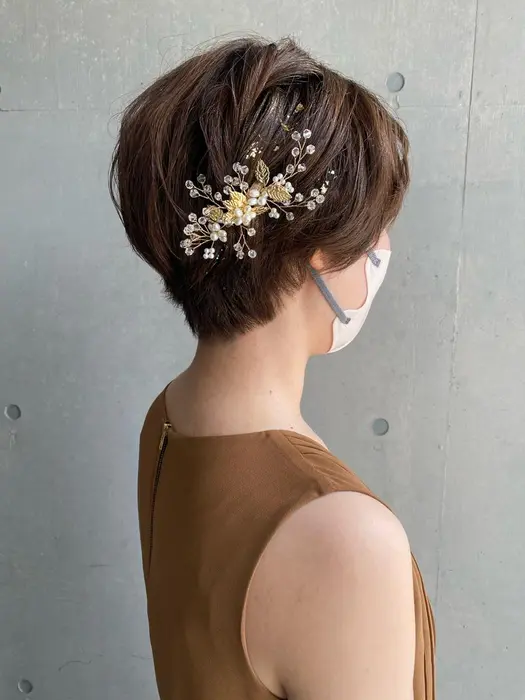 ショートヘアこそ映える!結婚式のお呼ばれアレンジ10パターン - Lumiel。