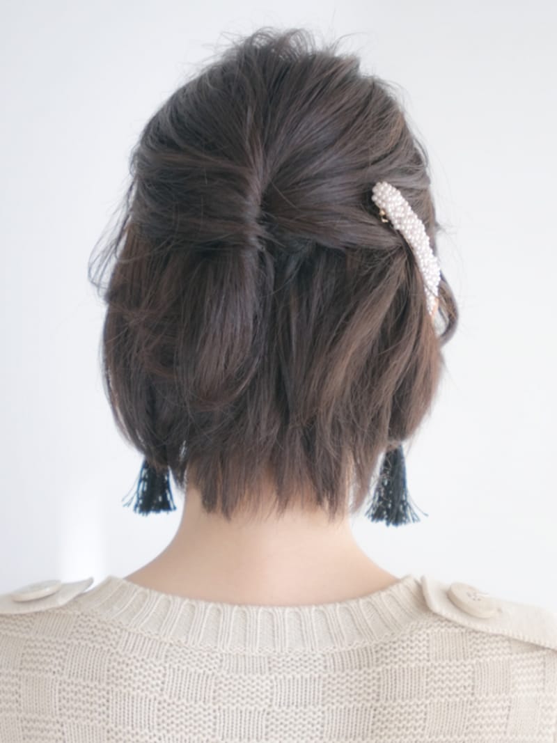 🔰初心者向けショートヘアの簡単ハーフアップアレンジ 短くても出来る!くるりんぱを使ったヘアアレンジを美容師が教えます。ショートボブやボブでも大丈夫。普段使いから、結婚式や2次会でもOK。