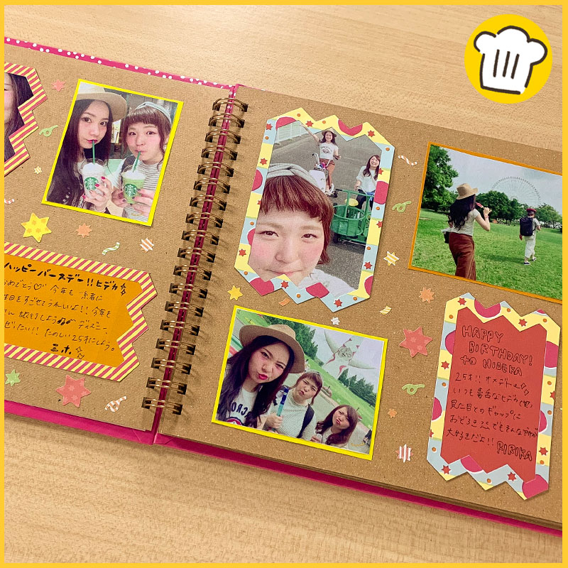 写真もメッセージカードも簡単に作れる!友達の誕生日に贈るポップで元気な寄せ書きアルバム 手作りアルバムアルバムキッチン。