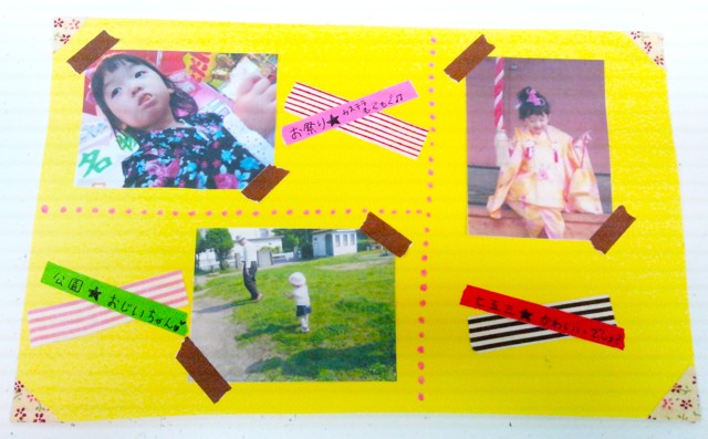 カードにマスキングテープで超かわいい個人写真ページ卒園アルバムの手作りアイデア、素材集ブログ。