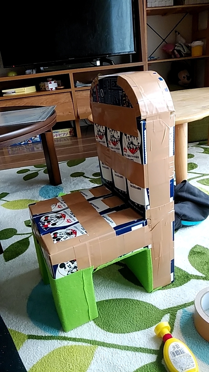 牛乳パック椅子 子供用 の作り方。背もたれ・ひじ掛けあり!&あんふぁん。