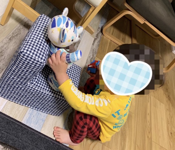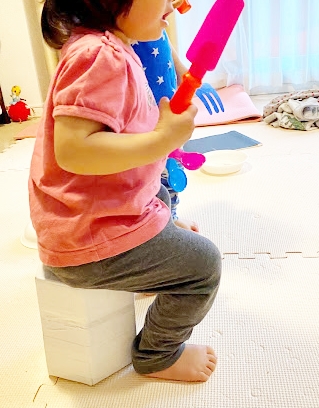 牛乳パックの椅子は 安定している様子。 自分だけの特別感もあってか? 遊びの時は とてもご機嫌さんでした。保育所等訪問支援牛乳パック椅子体幹の安定。