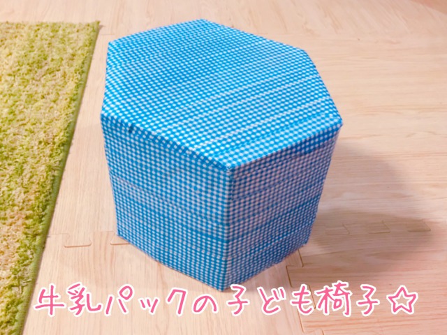 カバーは購入が正解?!子供と一緒に作れる牛乳パック椅子 六角形 の作り方フルイク。