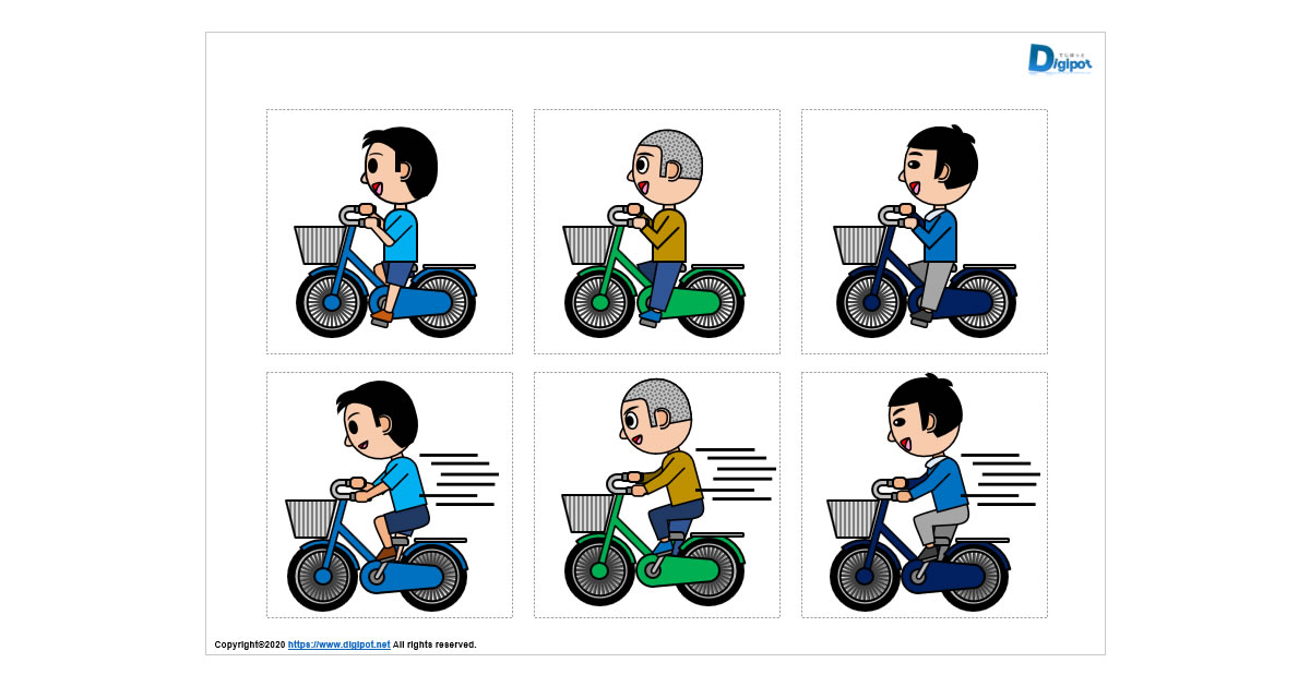自転車イラストなら、小学校・幼稚園向け・保育園向けのかわいい無料イラストお試しフリー素材 カット がいっぱいの安心サイトへどうぞ。