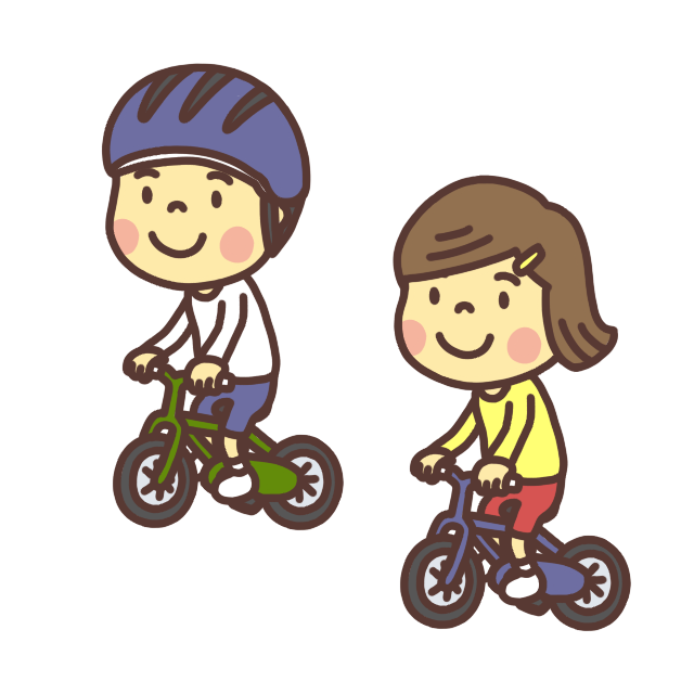 自転車に乗ってお出かけをする子どもたちのイラスト 4パターンかわいい子どものイラスト素材 無料イラストバンク 本店。