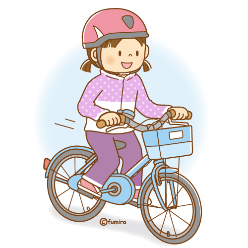自転車に乗る女の子のイラスト ソフト子供と動物のイラスト屋さん わたなべふみ。