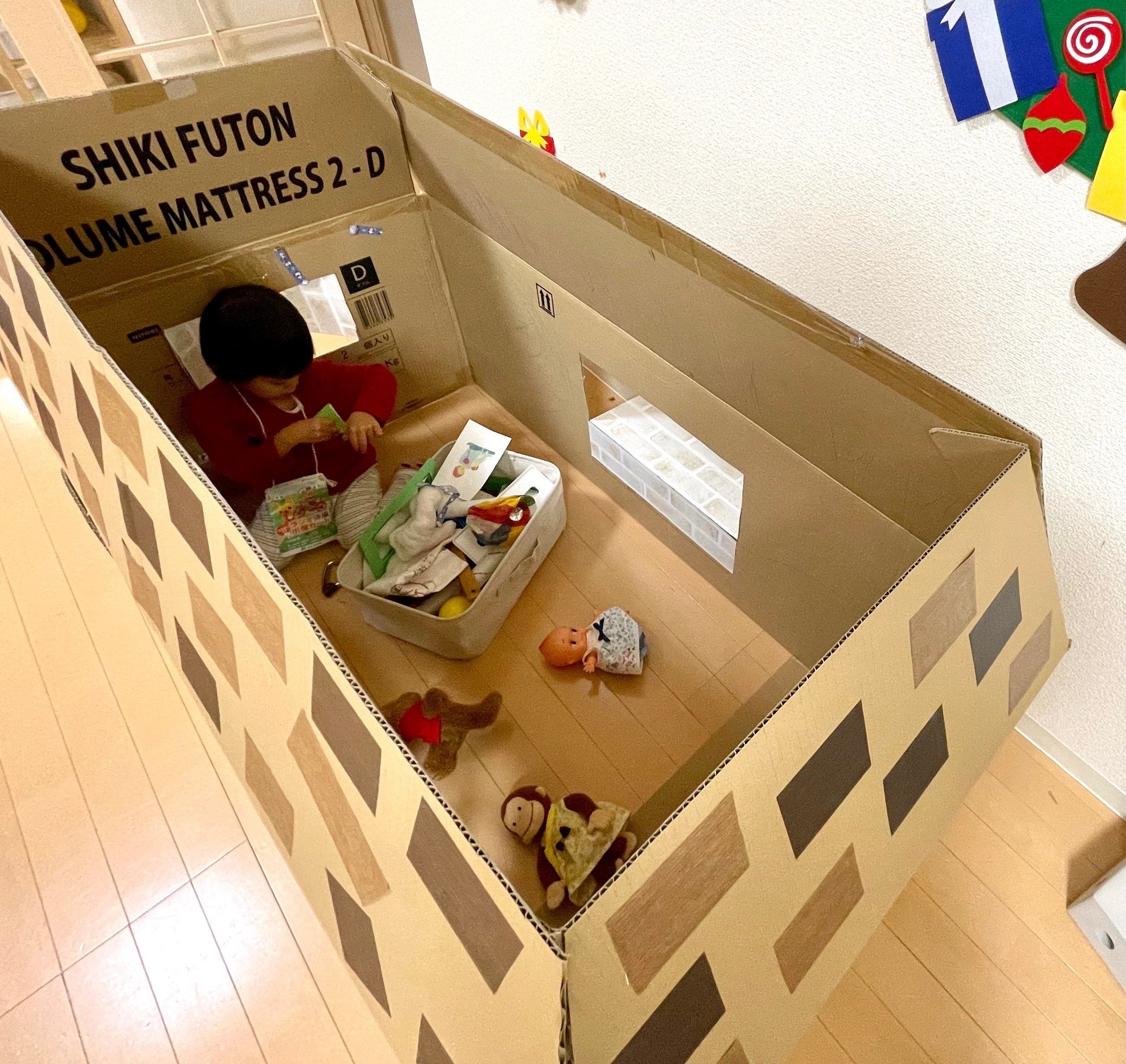 おうち時間の遊び 子供の秘密基地、段ボールハウスを手作り♪子供はもちろん親にも最高だった理由 - あさひ🍀捨てなくていい片付け。