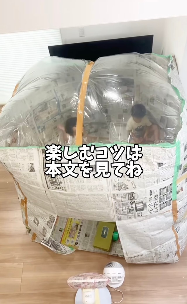 材料3つで『秘密基地ドーム』爆誕!子どもが大興奮のおうち遊びに子育てママから反響「絶対楽しいやつ」「大人も遊びたい」まいどなニュース。