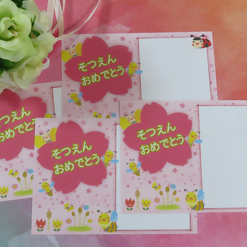 卒園卒業 寄せ書き二つ折り色紙 桜型メッセージカード付。