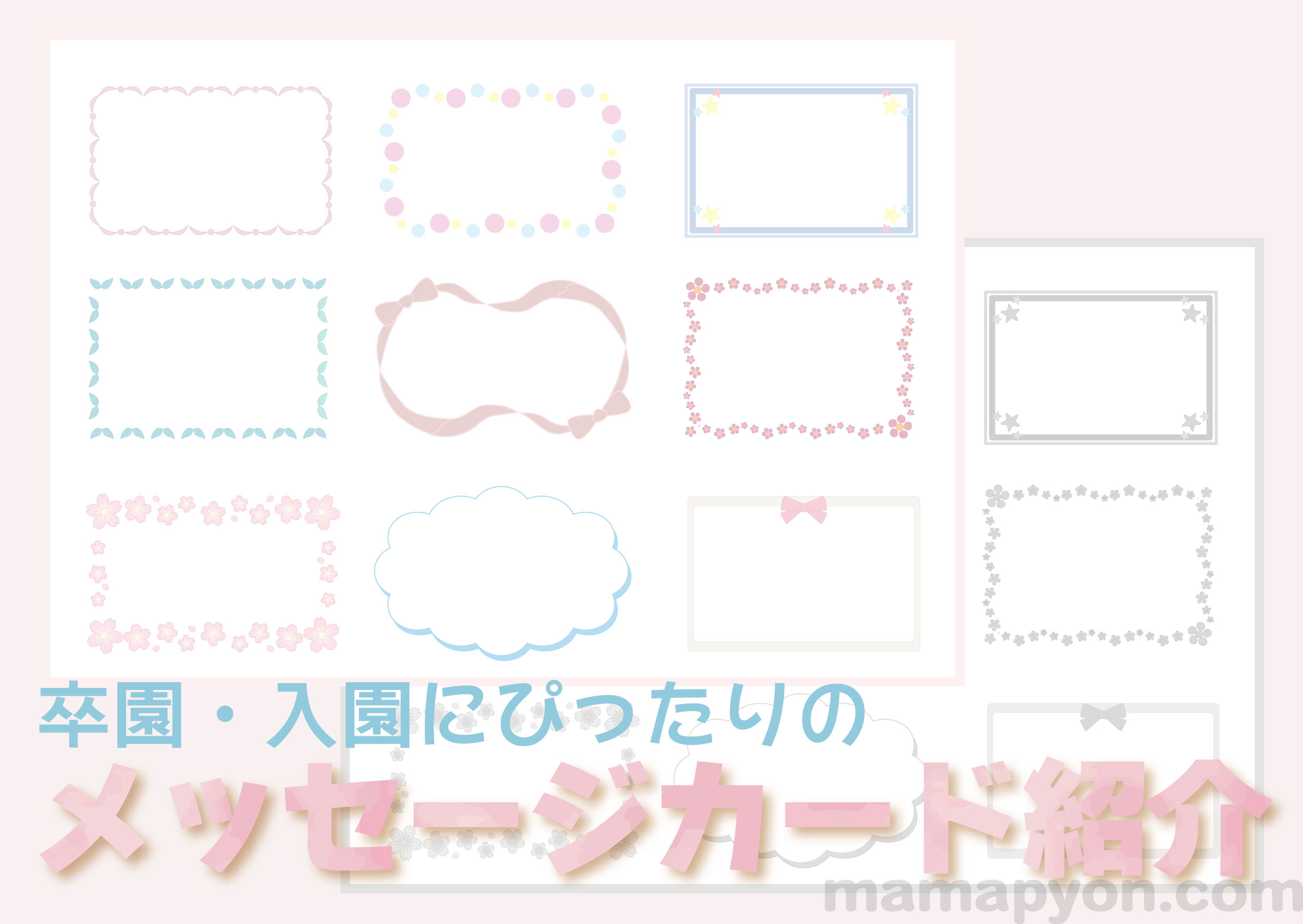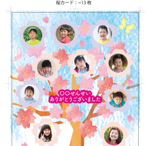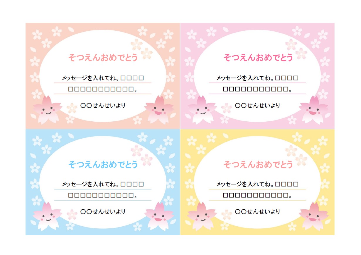 パステルカラーのかわいいメッセージカード「桜の花デザイン」卒園・卒業祝いにおすすめ!Wo イラストボックス「プレミアム」テンプレート。