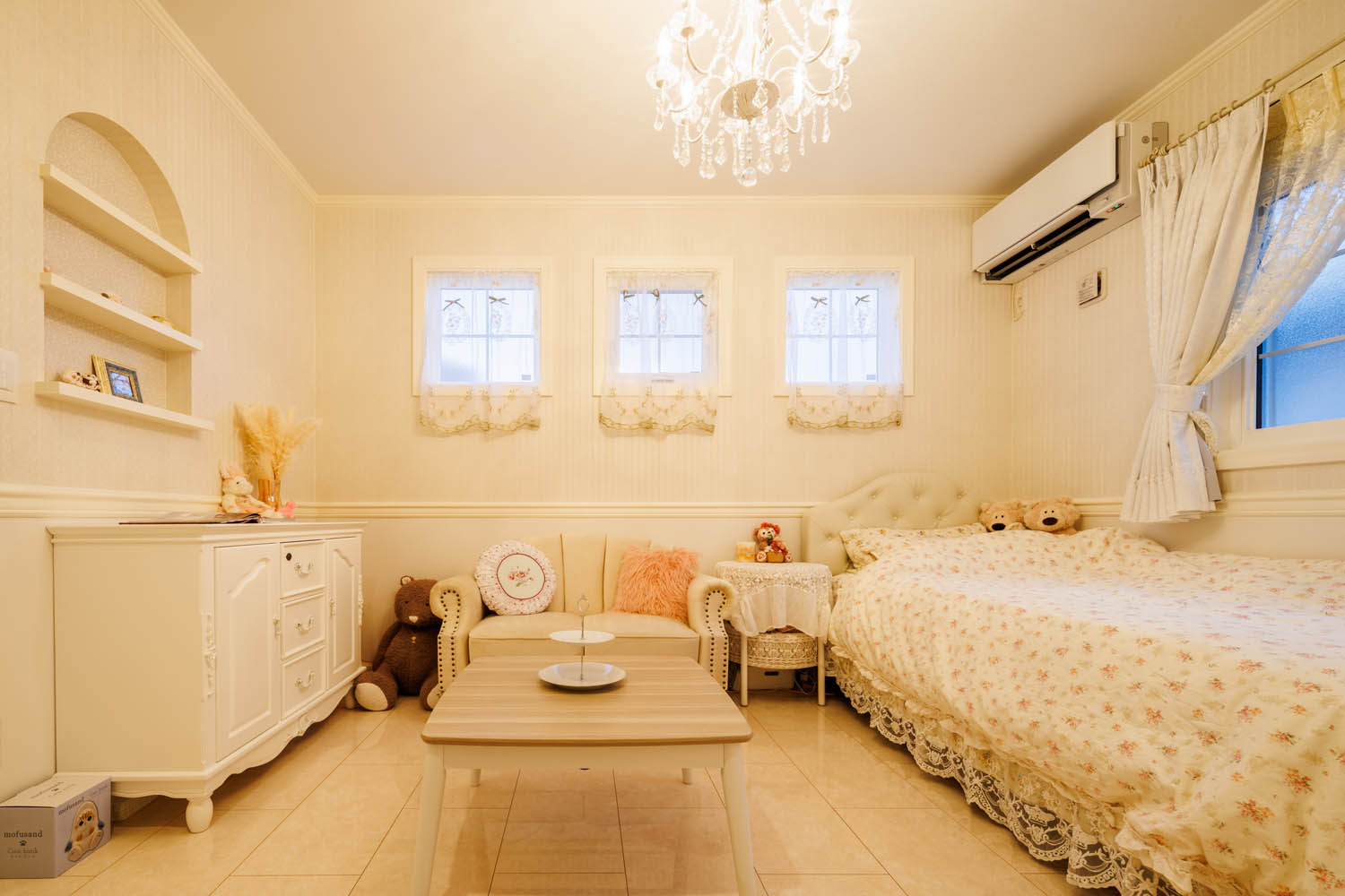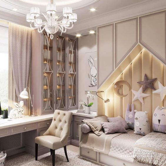 Luxury Kids Bedroom with Doll House Bed and Stairs。