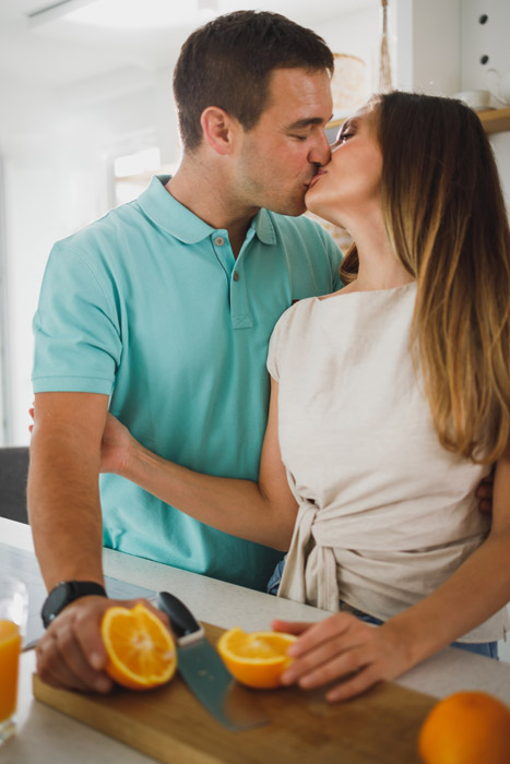 フリー写真キッチンでキスする夫婦パブリックドメインQ:著作権フリー画像素材集。