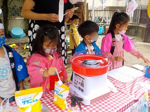 お祭りごっこ 「綿あめやさん」開店です田園調布幼稚園ブログ。
