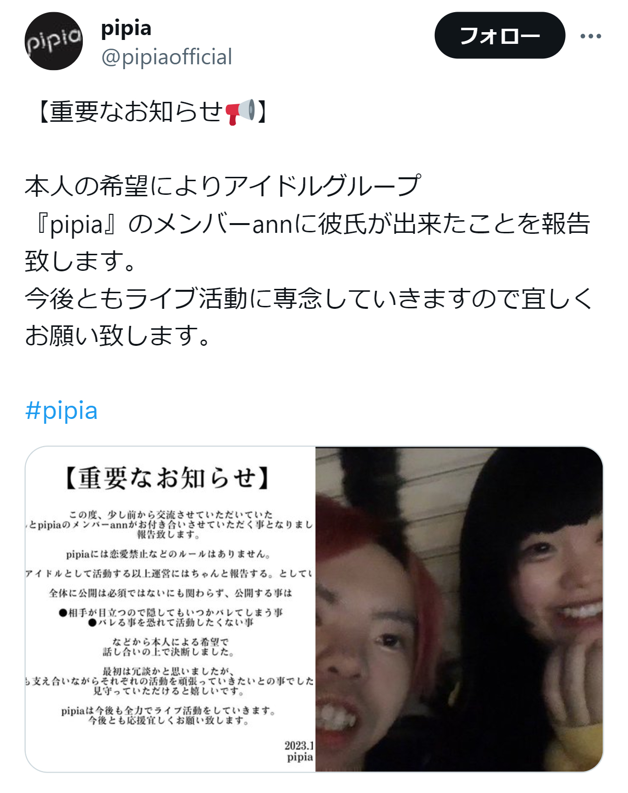 アイドル運営が異例のメンバー交際公表「彼氏出来た」 ツーショットとともに「話し合いの上で」 - 芸能 : 日刊スポーツ。