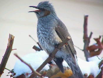 ヒヨドリの鳴き声 幼鳥 Brown-eared BulbulYoung bird。