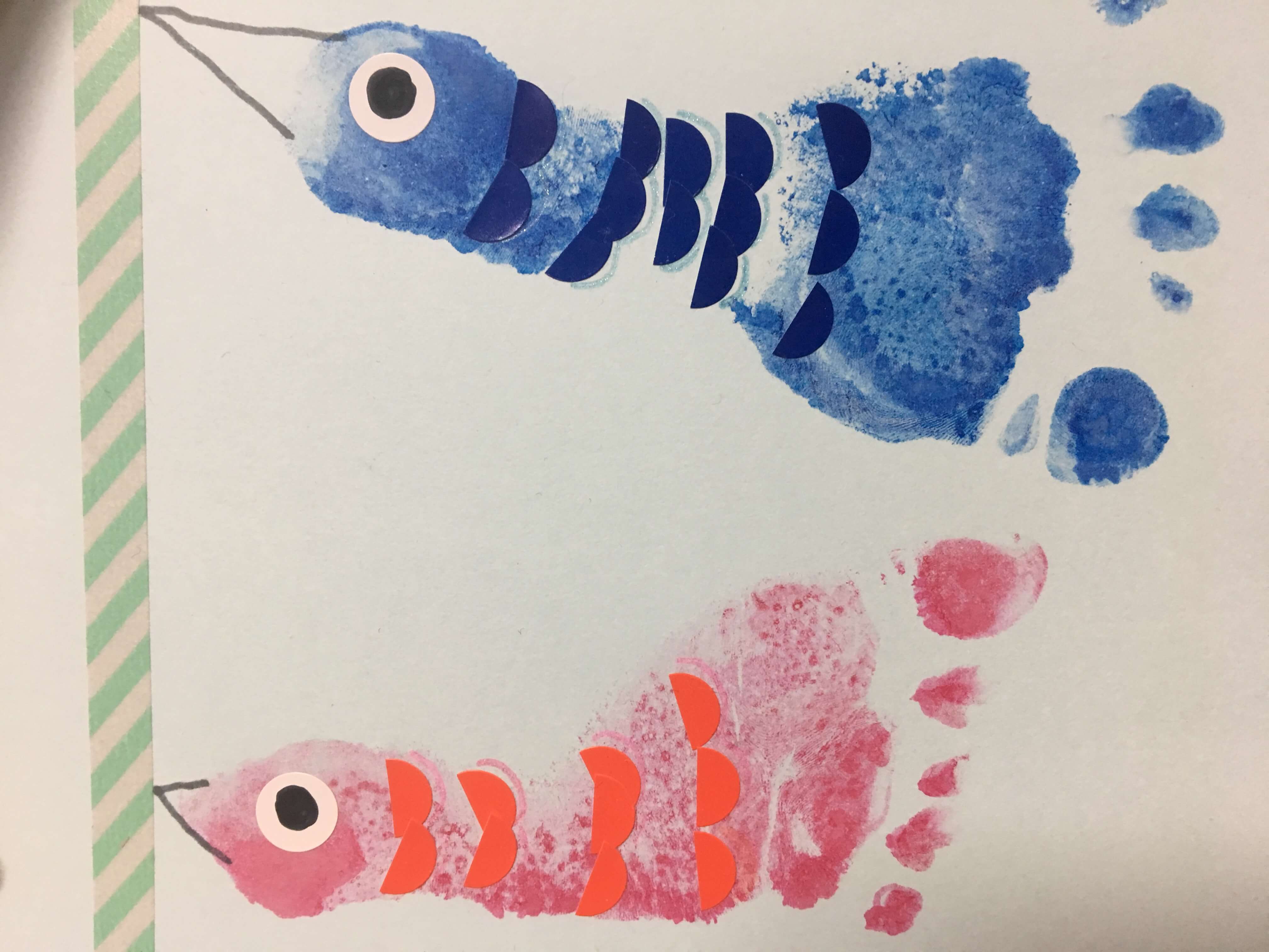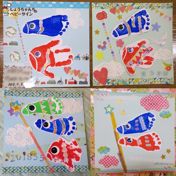 魚だね〜!と、楽しめる『こいのぼり』の手形足形アート制作♪埼玉県草加市 獨協大学前しょうちゃんちのベビーサイン のぞいて!知って!赤ちゃんの世界♪。