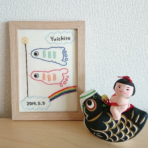 こいのぼり 手形足形刺繍ボード 受注制作 通常カラー - 手刺繍やさん Kynttiläminne byGMOペパボ国内最大級のハンドメイド・手作り通販サイト。