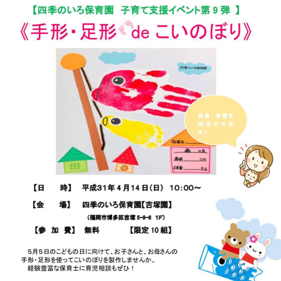 手形・足形deこいのぼり四季のいろ保育園福岡市中央区舞鶴・博多区博多・吉塚園・こども家庭庁。