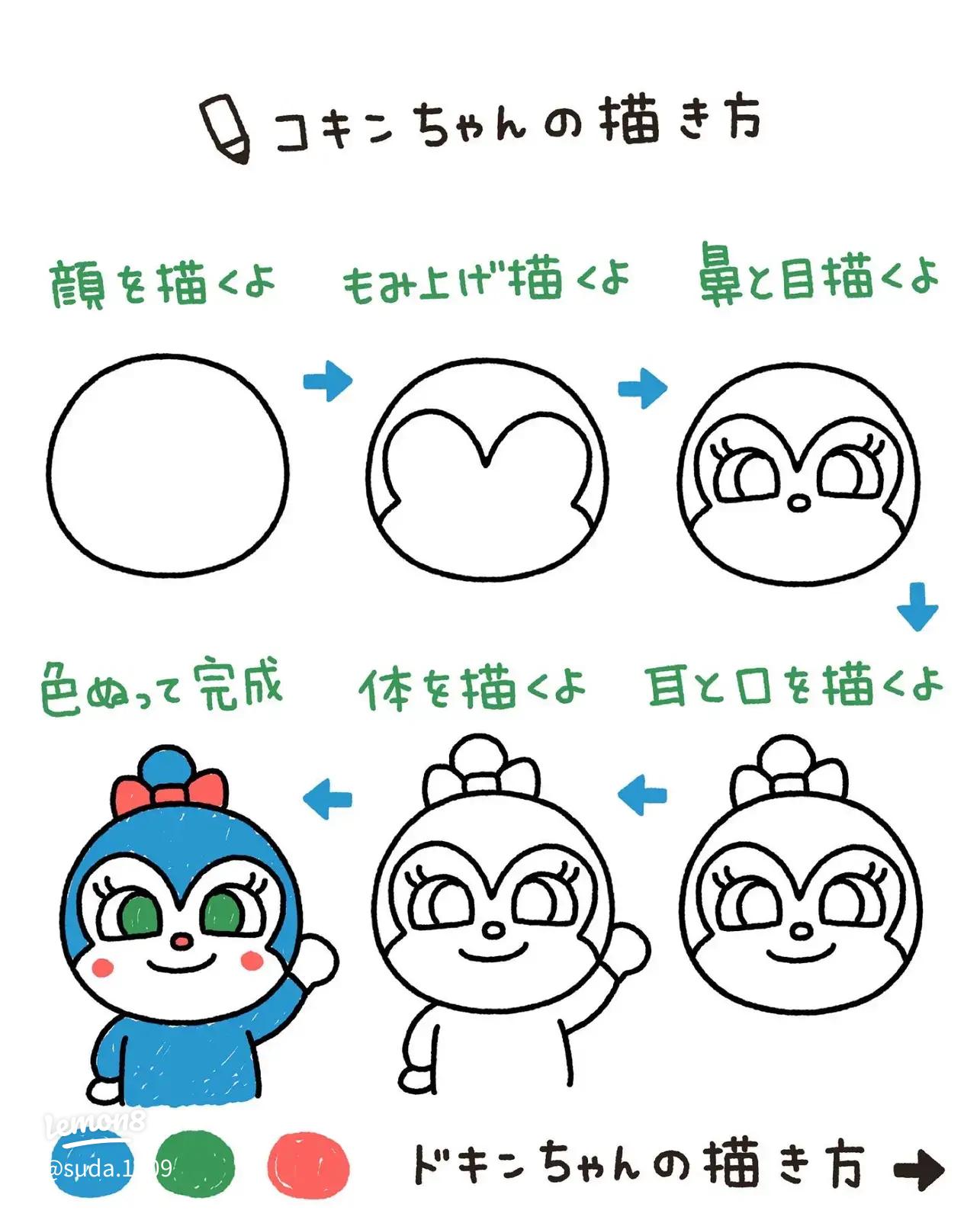 アンパンマンの描き方8選』 @puju_illust15 ←ほかの投稿はここから見れるよ♪ アンパンマンキャラクターの描き方をまとめてみました。うちの子もアンパンマン大好き✨ぬいぐるみ抱えて寝てます。 ○描き方が見れるキャラクターはこちら ・アンパンマン ・しょくぱんまん。