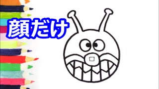 アンパンマンイラスト 描けたらうれしい!顔だけ!説明付き!バイキンマンの絵の描き方How to drawanpanman。