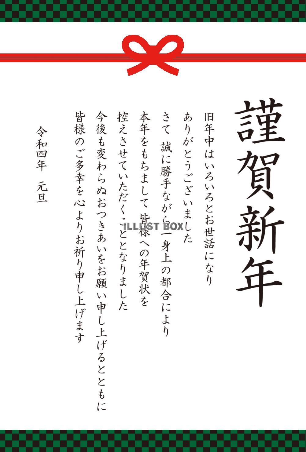 6_年賀状終い 2022・水引・緑市松・謹賀新年・縦 :イラスト無料。