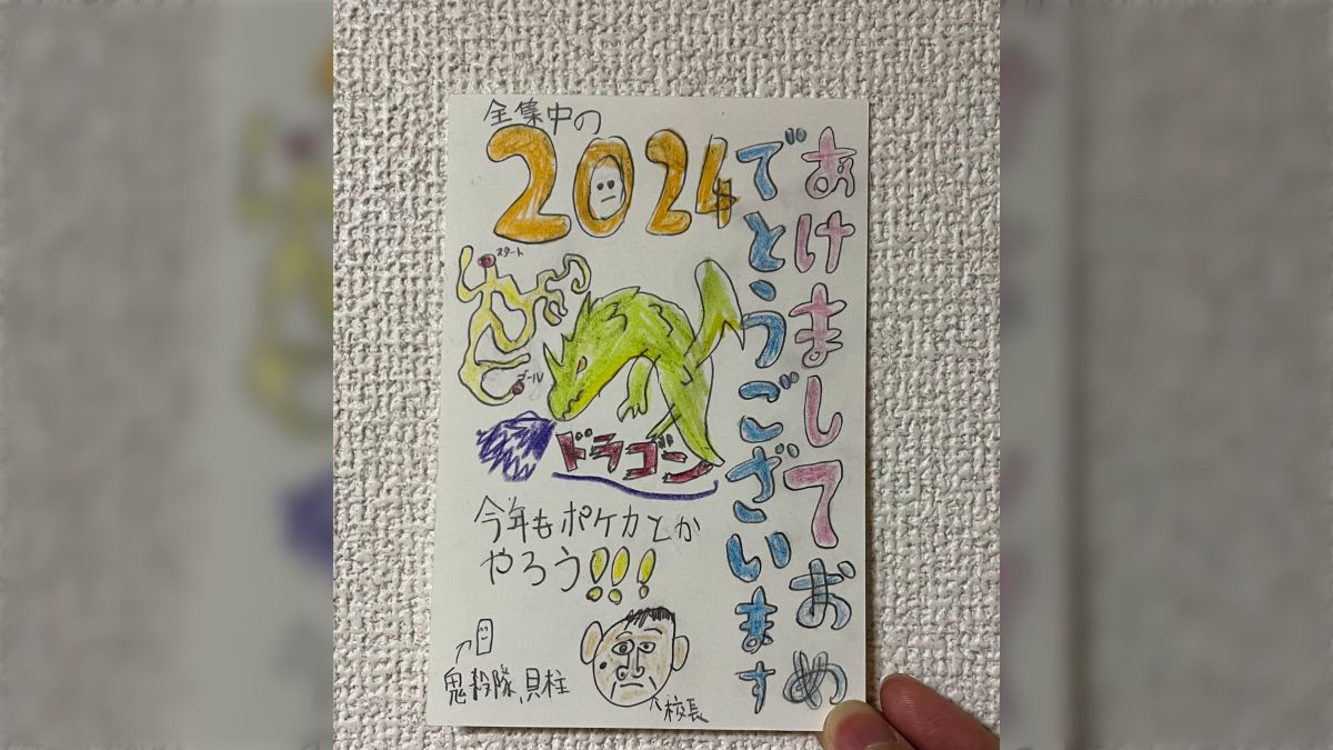 毎年恒例になりつつある、小三から送られてきたような年賀状を作った「めちゃくちゃ小学生」「鬼殺隊貝柱が良すぎる」 - Togetter。