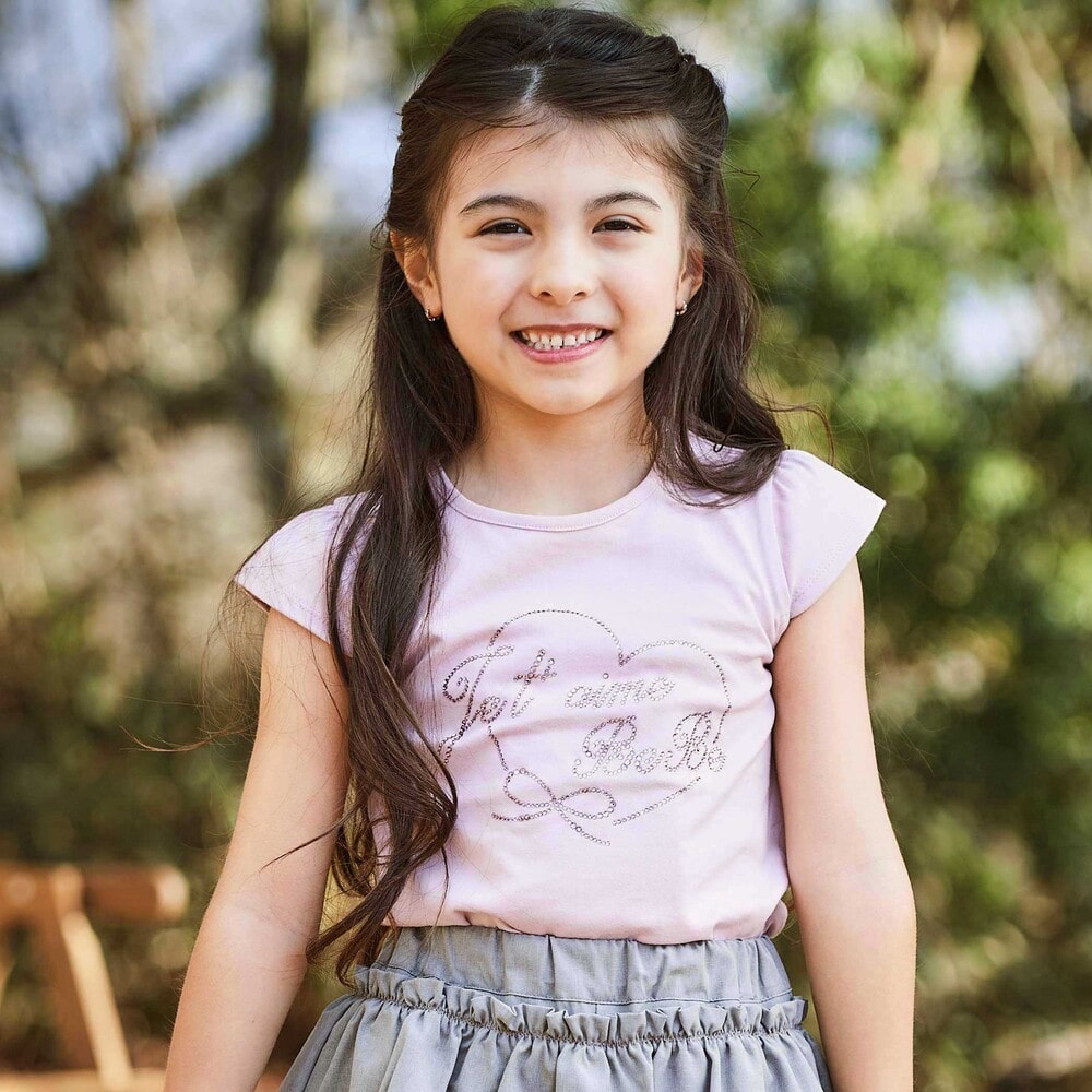 ラインストーンハートロゴ天竺キャップスリーブTシャツ 100~160cm100cm ピンク : トップス べべモール公式 -子供服べべの公式通販サイト「BEBE MALL」。