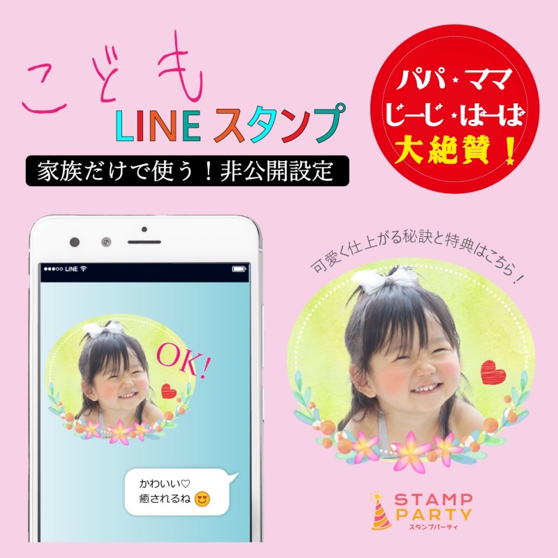 子供の写真LINEスタンプがかわいい!今がチャンス!我が子写真で作る宝物スタンプstamp party スタンプパーティ LINE。