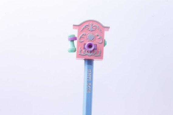 古い電話、鉛筆トップ、ホットライン、青、鉛筆、鉛筆トップ、デザイン、子供、コレクション、ヴィンテージ、写真小道具、~ 20-02-52 AA -Etsy 日本。