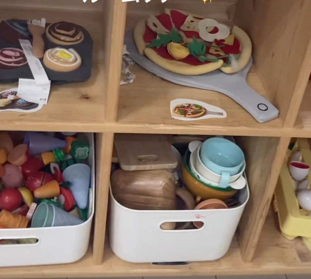 環境構成お部屋の模様替えをしましたˎˊ˗ 写真は部屋の一部のままごと・お世話コーナー* 生活の動線はなるべくそのままに遊びの環境は定期的に変化を持たせています☺️ まだまだやりたいことが たくさんあります、、!!!🥺❤️🔥 お店屋さんの棚は@sirokamone0。