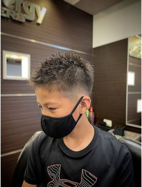 noriko nyudo ·͜·*♡キッズカット スッキリ!!短めソフトモヒカンがよく似合ってる😊 いつもありがとう💕キッズヘアキッズスタイルキッズカット男の子男の子カット男の子髪型小学生カット子供髪型ヘアカタログ刈り上げ短髪ソフトモヒカン。