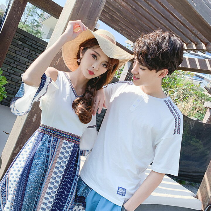 送料無料 ペアルック カップル ワンピース ペアtシャツ 夫婦 恋人 春夏 ペアルックカップル ペアお揃い 半袖 夏 カップル お揃い 服レディース メンズ 男女 ペア カップル ペアルック セットアップ tシャツ+パンツ 上下セット 韓国風 おしゃハピカムTOKYO。