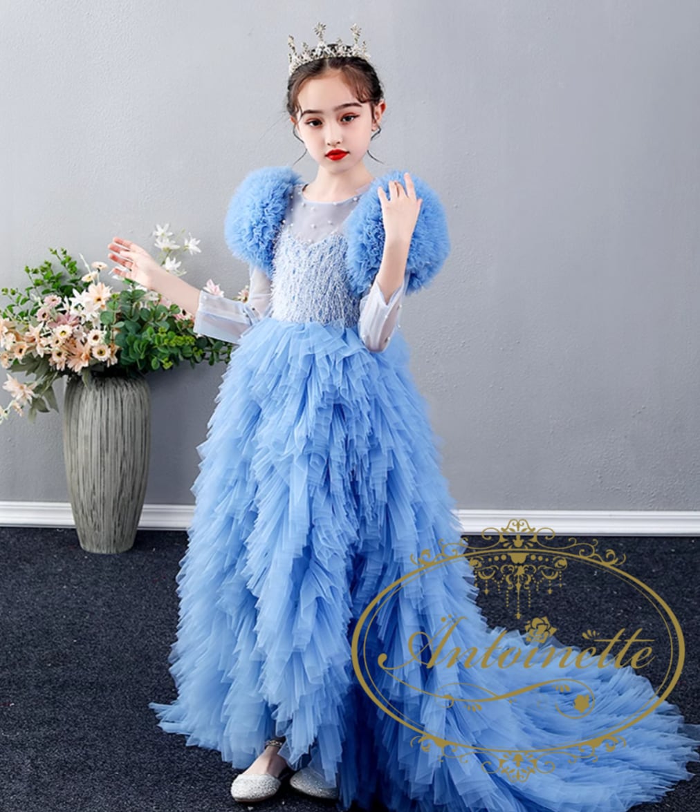 100~160 フリル チュールドレス リングガール 子供ドレス ピアノ発表会 ジュニアドレス ふんわりチュール 演奏会 結婚式 キッズ こどもコンクール 子供服 女の子 フォーマAntoinette。