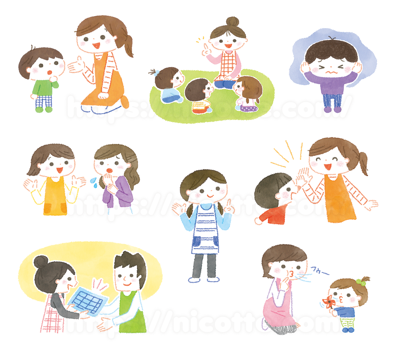 保育士さんとこどものカットイラストイラストレーターたかしまよーこWEB nicotte ◇子供向け・絵本・児童書・教材・動物のかわいいイラスト。