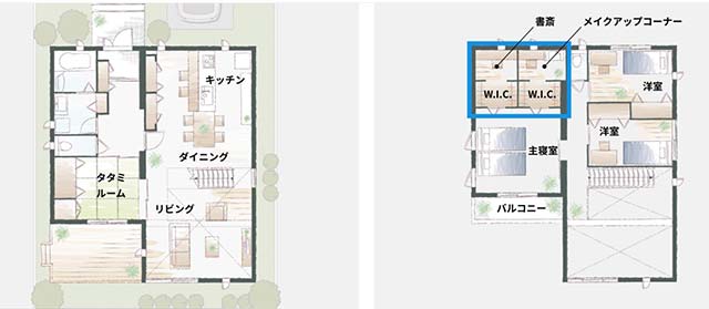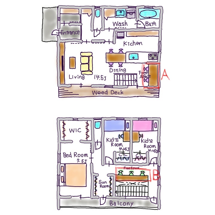 夫婦別のテレワーク書斎のある家の間取り図間取り シュミレーション。