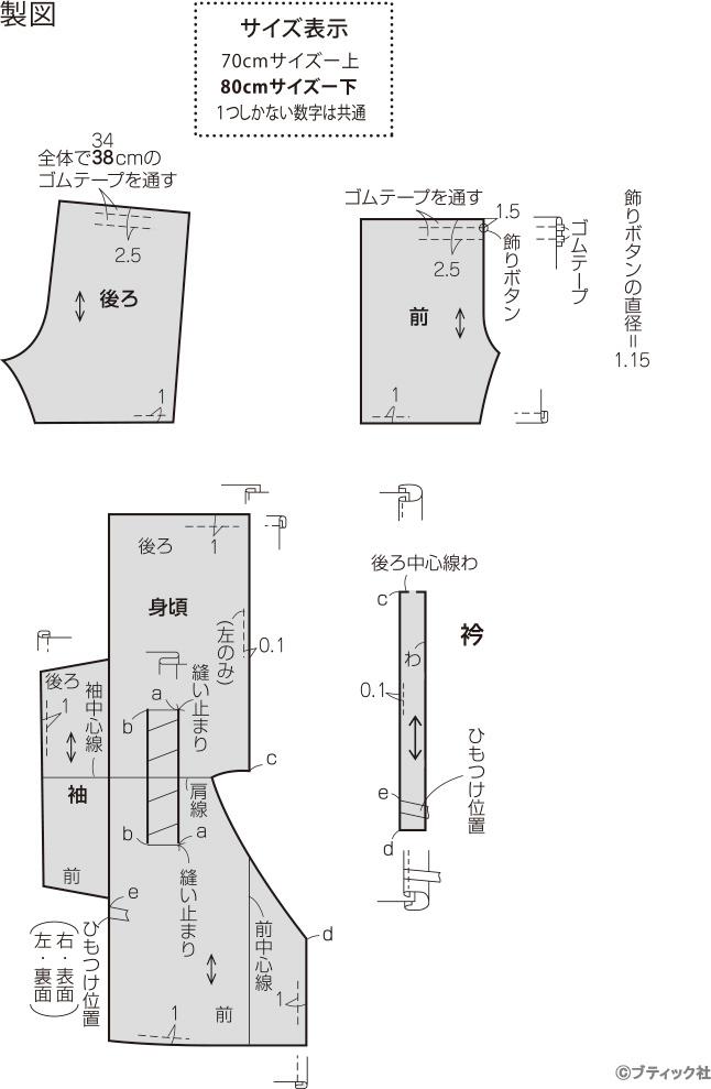 作りやすくてかわいい、ベビーに着せたい!ロンパース甚平 型紙 作り方 70。