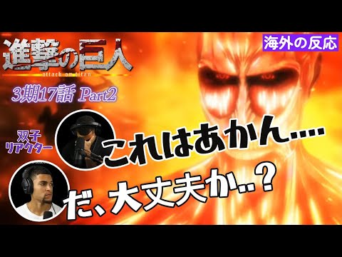 進撃の巨人 3期17話Part2 アルミンの決死の作戦に言葉を失う双子ニキ海外の反応 - YouTube。