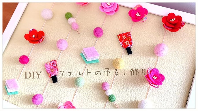 縫わない 切って貼って作る!フェルトとちりめんで簡単、吊るし飾りフレームの作り方 雛まつりDIY DIY How to make felthanging wall decoration。