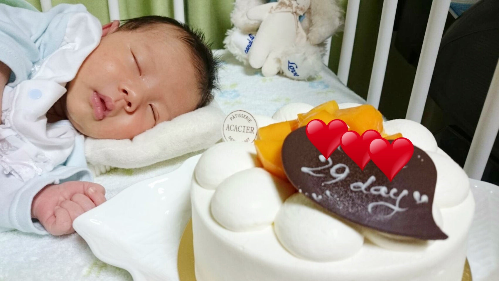 HAPPY 1month BIRTHDAY💓💓💓 きょうで生後1ヶ月のsister👶🍼 アレクが記念にケーキを買ってきてくれたよ〜🌟🌟🌟ケーキが来たときにはおちびーぬとsisterは寝ちゃってて大人だけでお祝い笑生後1ヶ月happybirthday。
