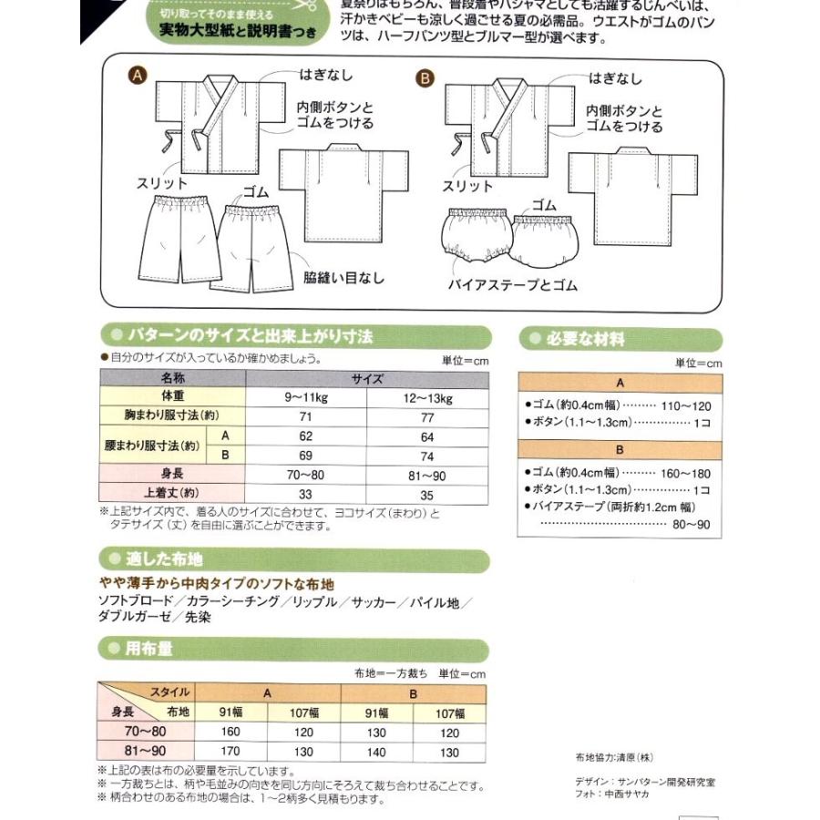 パターン型紙ベビーじんべい 甚平 簡単 実物大 作り方 子供服 ベビー服 キッズ 洋服 : 手芸のピロル・手芸用品と生地と雑貨のお店 -通販 - Yahoo!ショッピング。