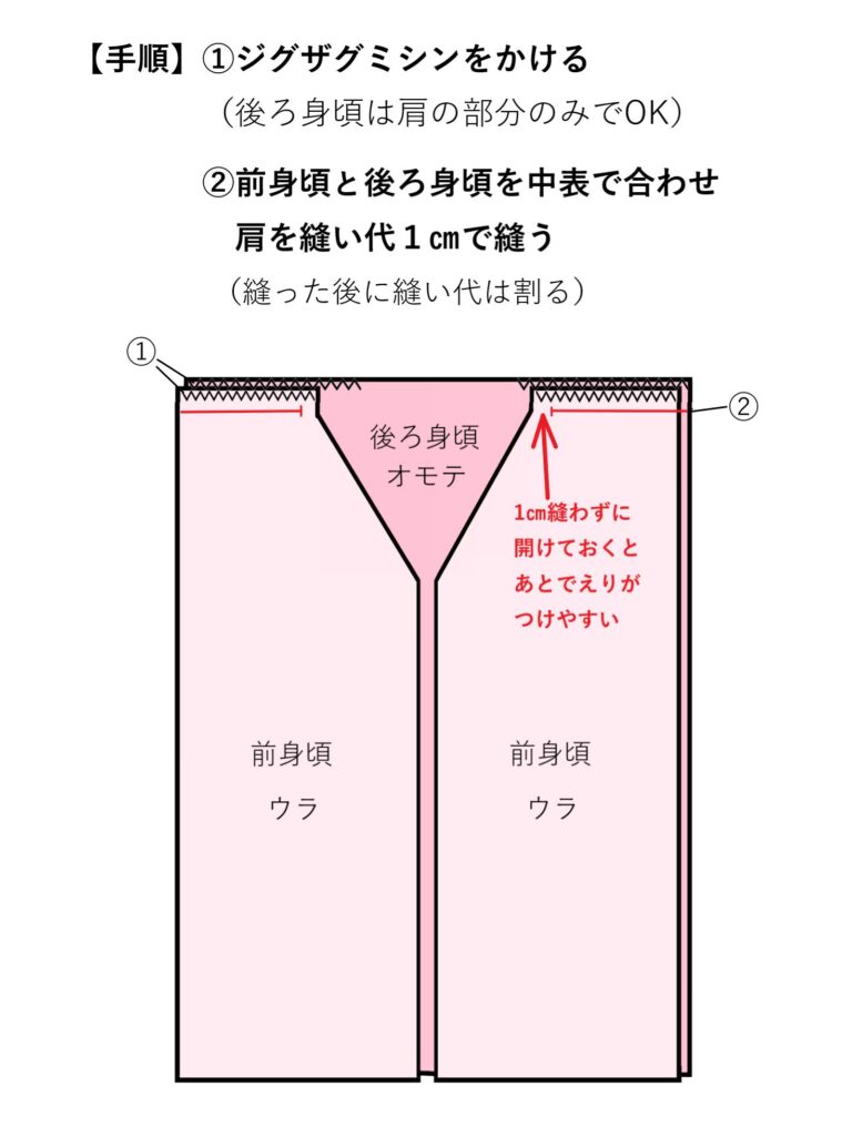 子供一つ身 1~3歳 甚平の手縫い手順女の子用の手縫い工程 画像 を掲載。