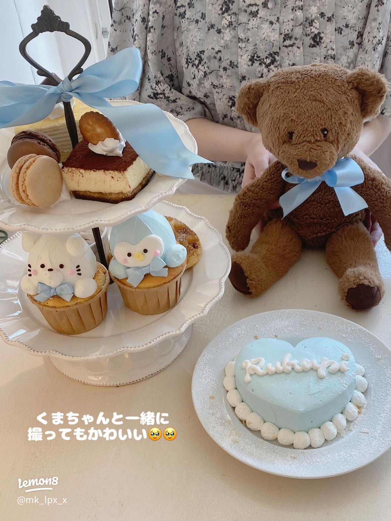 日本一アフタヌーンティー巡ってるayapom高円寺 ALL C'S CAFE 立体クマケーキとクマちゃんカップケーキセット🧸あとオムライスも🚩 立体クマちゃん2回目🐻♥️ 他の立体動物ケーキもかわいくて何回でも行きたい🥺💓 🖤立体クマケーキ2500円🖤カップケーキセット700円。