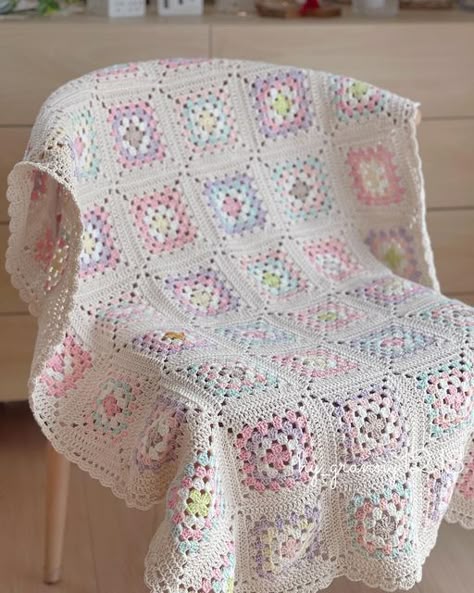 コットン糸でブランケット編みました! 真四角で赤ちゃんのおくるみサイズ。 @nijiyarn さんのむら染めの糸で縁編み。めちゃめちゃかわいい糸😍かわいい糸をいつもありがとうございます〜・ ・毛糸作品u39ベビーブランケット 手編みブランケット crochet amimono。