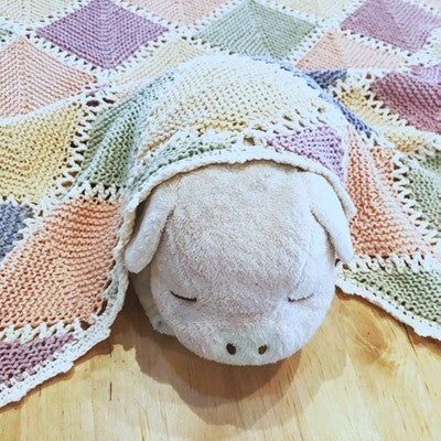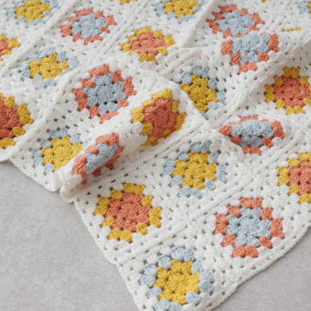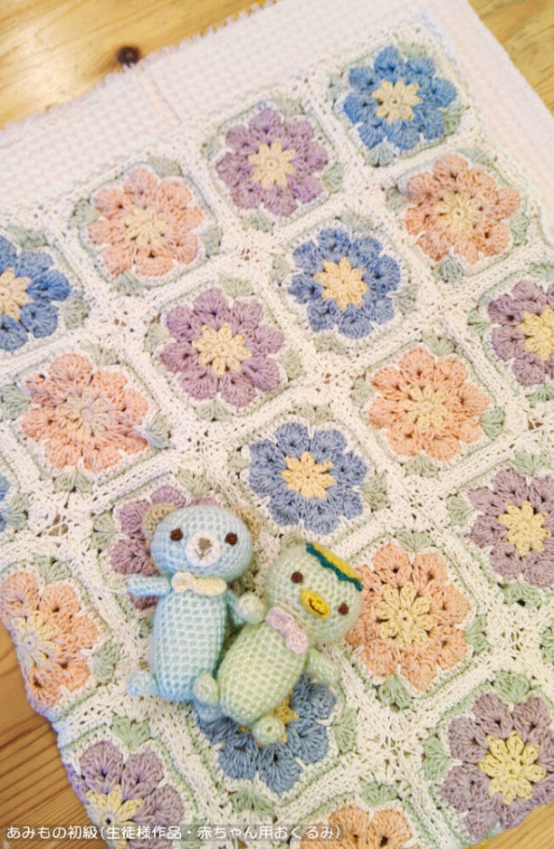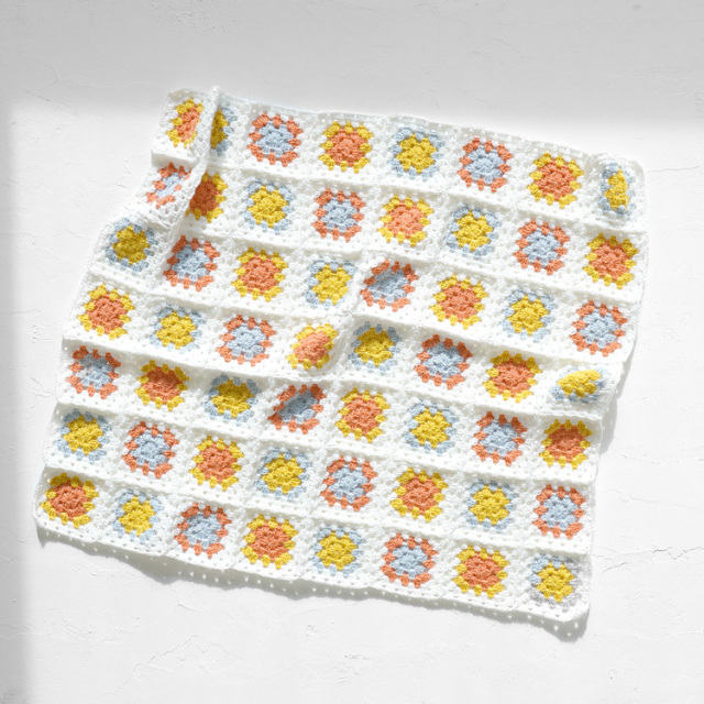 編み物キット4-2 モチーフつなぎのベビーおくるみ 手編み糸と生地 イトヘンラボ。