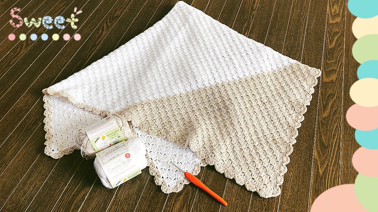 crochet★セリアのコットンで♩¨̮シンプルが可愛い *´` 赤ちゃんのおくるみブランケット。