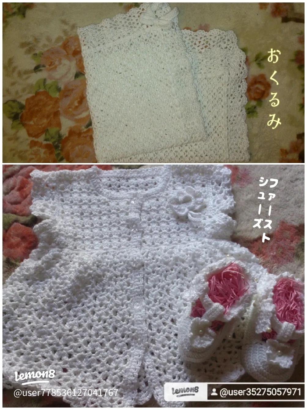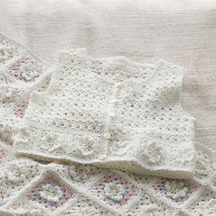 モチーフ編みで編む、赤ちゃんのためのおくるみ ケープ とくつ – My Cup of Tea。